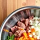- Говядину вымыть, обсушить салфетками, порезать на части. Потом загрузить в мясорубку и прокрутить.