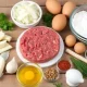 - Взбейте венчиком 2 яичных белка, перелейте их в фарш, добавьте 3-4 ложки манки (оцените по консистенции), посолите и поперчите. Тщательно перемешайте все ингредиенты и отставьте миску на 10-15 минут, чтобы разбухла крупа.