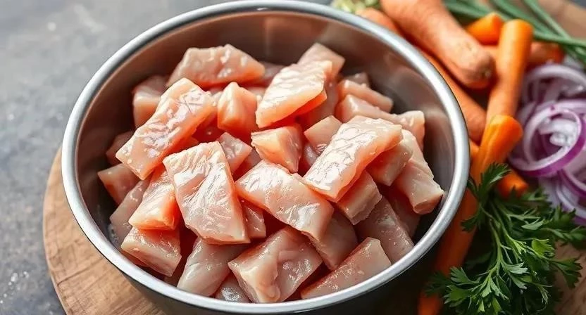 - Приготовление фарша: Кусочки минтая пропустить через мясорубку или измельчить в блендере.