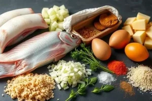 - Смешайте ингредиенты: в миске соедините рыбный фарш, обжаренный лук, яйцо, панировочные сухари, сметану, соль и перец. Тщательно перемешайте.