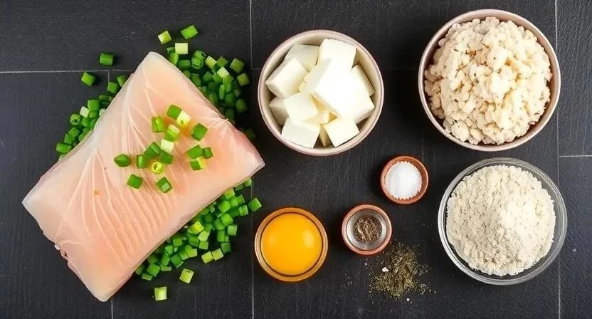 Для приготовления этих замечательных котлет нам понадобятся следующие ингредиенты. Я всегда стараюсь выбирать свежую рыбу, это залог вкусного блюда. А вот лук можно использовать любой, но зеленый придает котлетам особую нежность и аромат.
