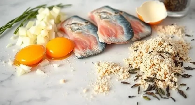 Для приготовления этих восхитительных рыбных котлет нам понадобятся следующие ингредиенты. Я всегда стараюсь выбирать свежую рыбу, но можно использовать и замороженную, предварительно разморозив ее естественным путем. Что касается чая, я предпочитаю зеленый, но вы можете экспериментировать с разными сортами.