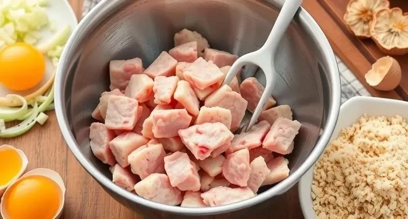 - Тщательно вымесить фарш руками до однородной консистенции. Если фарш получается слишком жидким, можно добавить немного панировочных сухарей или овсяных хлопьев.