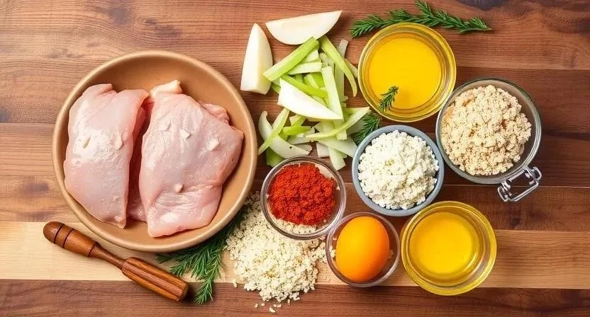 Все ингредиенты можно найти в любом супермаркете. Куриный фарш лучше выбирать из бедра, он более сочный. Если нет дижонской горчицы, можно использовать русскую, но вкус будет немного отличаться. Панировочные сухари можно заменить на молотый сухарь или овсяные хлопья. Я всегда добавляю немного свежей зелени в фарш, это придает котлетам особый аромат.