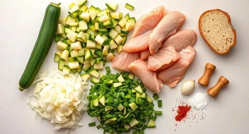 Для приготовления этих замечательных котлет нам понадобится совсем немного ингредиентов. Я всегда стараюсь выбирать самые свежие продукты, это залог вкусного блюда. Кстати, цуккини лучше брать молодые, у них меньше семечек и более нежная текстура. А фарш – обязательно свежий, с небольшим количеством жира, чтобы котлеты не получились сухими.