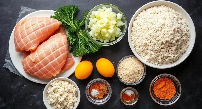 Для приготовления самых сочных куриных котлет с укропом нам понадобятся следующие ингредиенты: