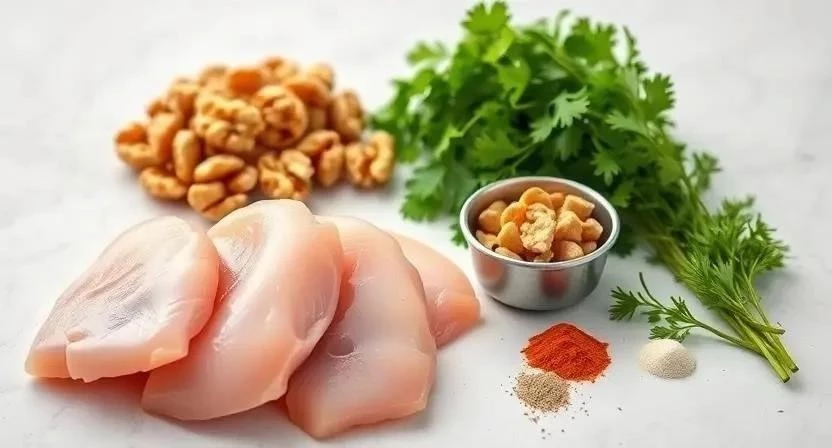 Для приготовления этих восхитительных котлет нам понадобится всего несколько простых ингредиентов. Я всегда стараюсь выбирать самые свежие и качественные продукты, ведь от этого напрямую зависит вкус готового блюда. Где же я их беру? Куриное филе – на проверенной ферме, орехи – в специализированном магазине, а зелень – с нашего огорода. Вот что нам понадобится: