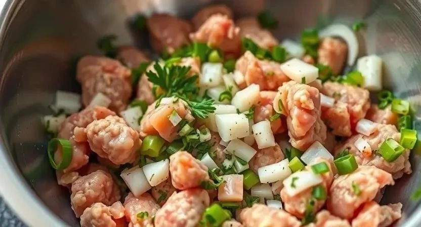 - Тщательно вымесить фарш, чтобы все ингредиенты хорошо соединились.