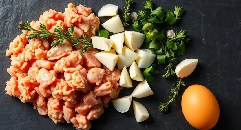 Для приготовления этих ароматных котлет нам понадобится совсем немного ингредиентов. Я всегда стараюсь выбирать самые свежие и качественные продукты, ведь от этого напрямую зависит вкус готового блюда. Куриный фарш лучше брать из бедра, он более сочный, чем из грудки. А тимьян можно использовать как свежий, так и сушеный, но свежий, конечно, ароматнее. Вот что нам потребуется: