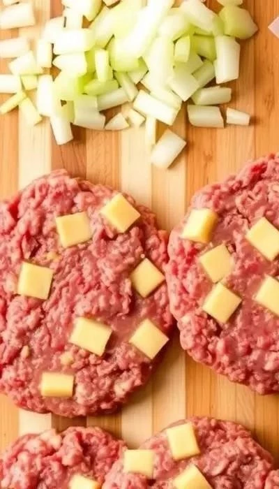 - Сформируйте котлеты, сделайте углубление и наполните чеддером (30 г).