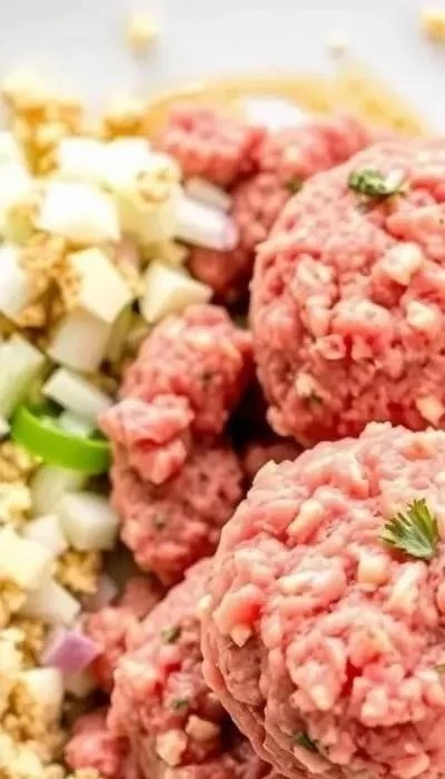 - Смешанный фарш (говядина + свинина) – идеальный баланс вкуса и сочности.