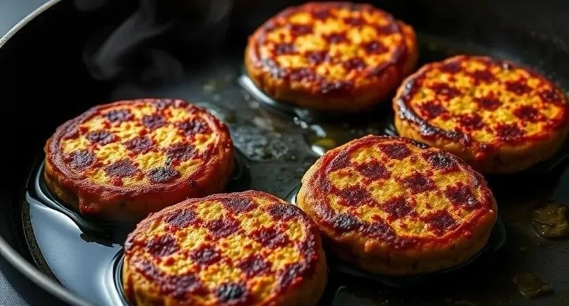 - Обжарьте котлеты: разогрейте растительное масло в сковороде на среднем огне. Обжаривайте котлеты с обеих сторон до золотистой корочки (примерно по 5-7 минут с каждой стороны).