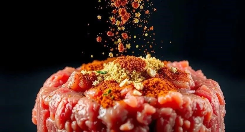 - Приготовление котлет: Смешайте фарш, мелко нарезанный лук, яйцо, панировочные сухари, зиру, орегано, соль и перец.