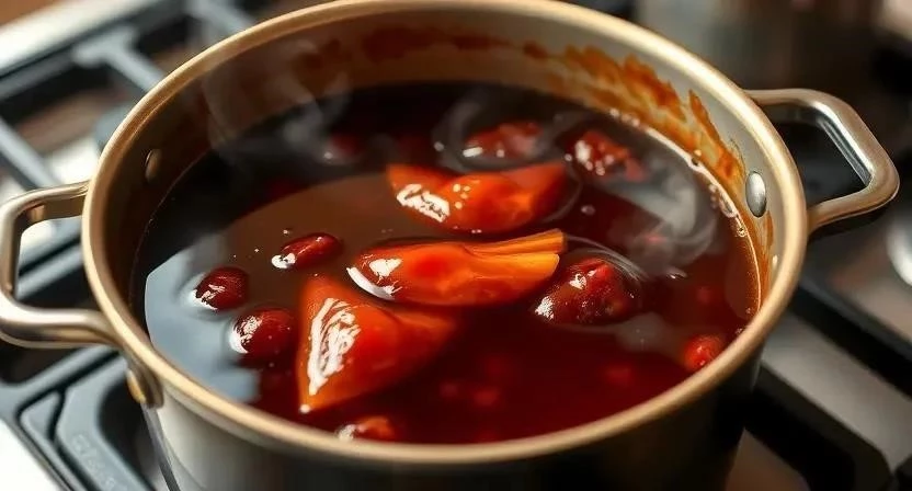 - Доведите до кипения: поставьте кастрюлю на средний огонь и доведите до кипения, постоянно помешивая.