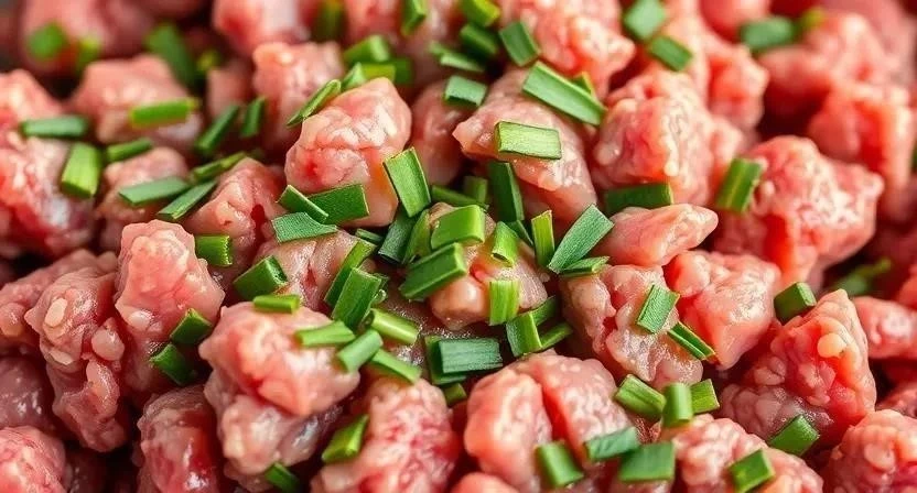 - Подготовка фарша: Пропустите говядину и сало через мясорубку. Я предпочитаю использовать крупную решетку, чтобы фарш получился более текстурным.