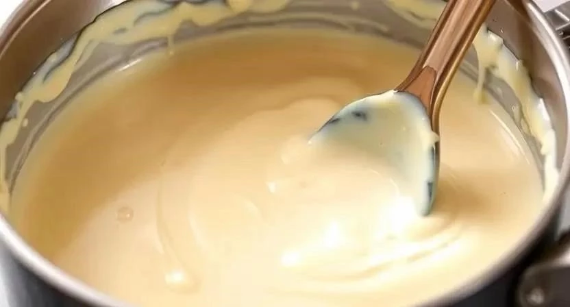 - Постепенно влить молоко, постоянно помешивая, чтобы не образовались комки.