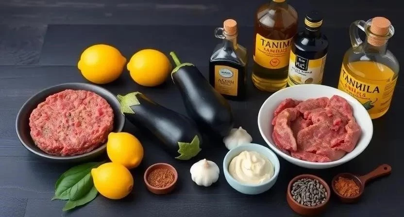 Для приготовления этого блюда нам понадобятся качественные продукты. Я всегда стараюсь выбирать свежее мясо и специи, чтобы вкус был максимально насыщенным. Говяжий фарш лучше брать с небольшим количеством жира – так котлеты получатся сочнее. Баклажаны для баба гануш выбирайте спелые, с гладкой кожицей. Тахини (кунжутную пасту) можно найти в отделах с восточными продуктами или заказать онлайн. Вот полный список ингредиентов: