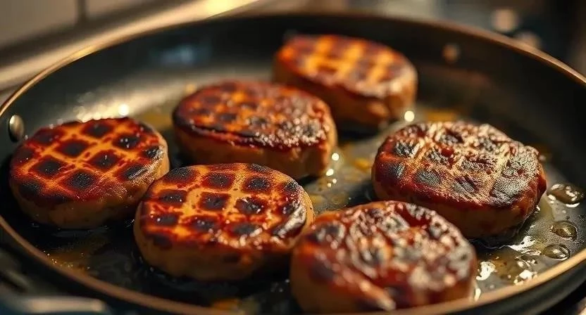 - Жарка котлет: Разогреваем растительное масло в сковороде и обжариваем котлеты с обеих сторон до золотистой корочки. Примерно по 5-7 минут с каждой стороны.