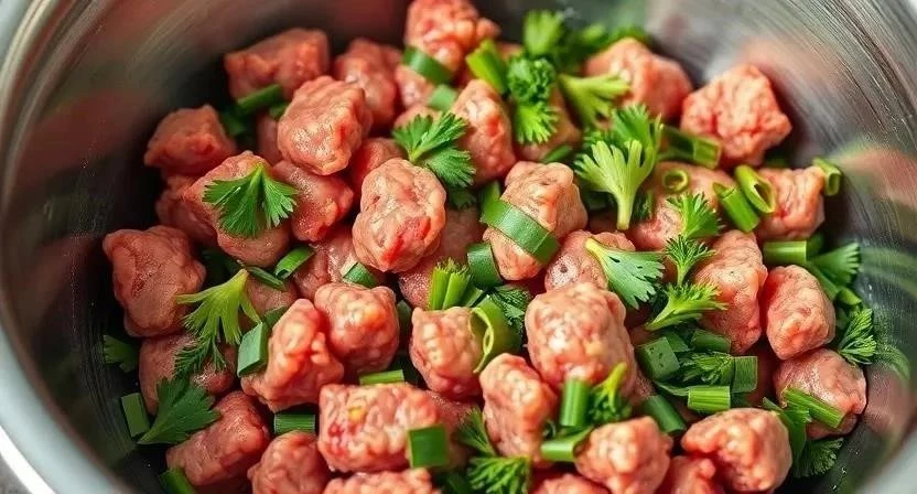 - Тщательно вымешивайте фарш, чтобы все ингредиенты равномерно распределились.