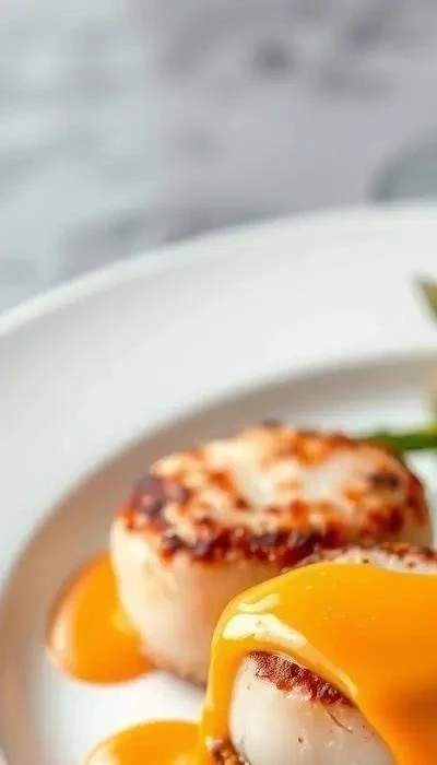 Изысканное сочетание морских гребешков и цитрусовой свежести. Гребешки рубятся для сохранения текстуры. Подаются с кисло-сладким апельсиновым соусом. Отличный выбор для праздника. (Время: 40 мин, Сложность: Средняя).