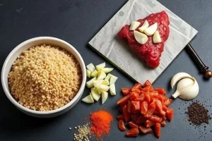 - Мясную смесь хорошо перемешайте и отбейте в течение нескольких минут. Это позволит лучше соединиться продуктам.