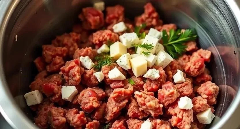 - Добавьте в фарш другие сыры: моцареллу, чеддер, пармезан.