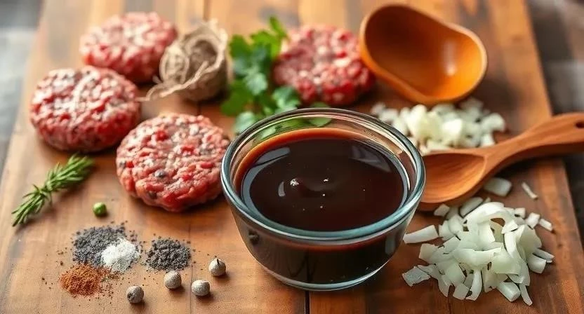 Для приготовления этих необычных котлет нам понадобятся следующие ингредиенты. Я всегда стараюсь выбирать свежий и качественный фарш, это залог вкусного блюда. Что касается соуса брауни, можно использовать готовый, но домашний, конечно, вкуснее.