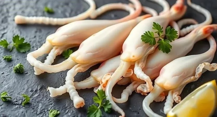 - Как выбрать качественный кальмар? – Обратите внимание на цвет и запах. Кальмар должен быть ровным, без потемнений и иметь легкий морской аромат.