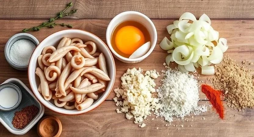 Качественный кальмар – залог успеха! Лучше всего приобретать свежезамороженные тушки. Обратите внимание на цвет – он должен быть ровным, без потемнений. Лук лучше брать сладкий, чтобы он не перебивал нежный вкус кальмаров. Панировочные сухари можно использовать как обычные, так и с добавлением специй. Я обычно беру сухари панко – они придают котлетам особую хрустящую корочку.