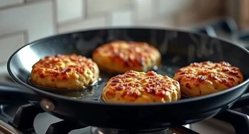 - Обжаривайте котлеты на среднем огне с обеих сторон до золотистой корочки (примерно по 3-4 минуты с каждой стороны).