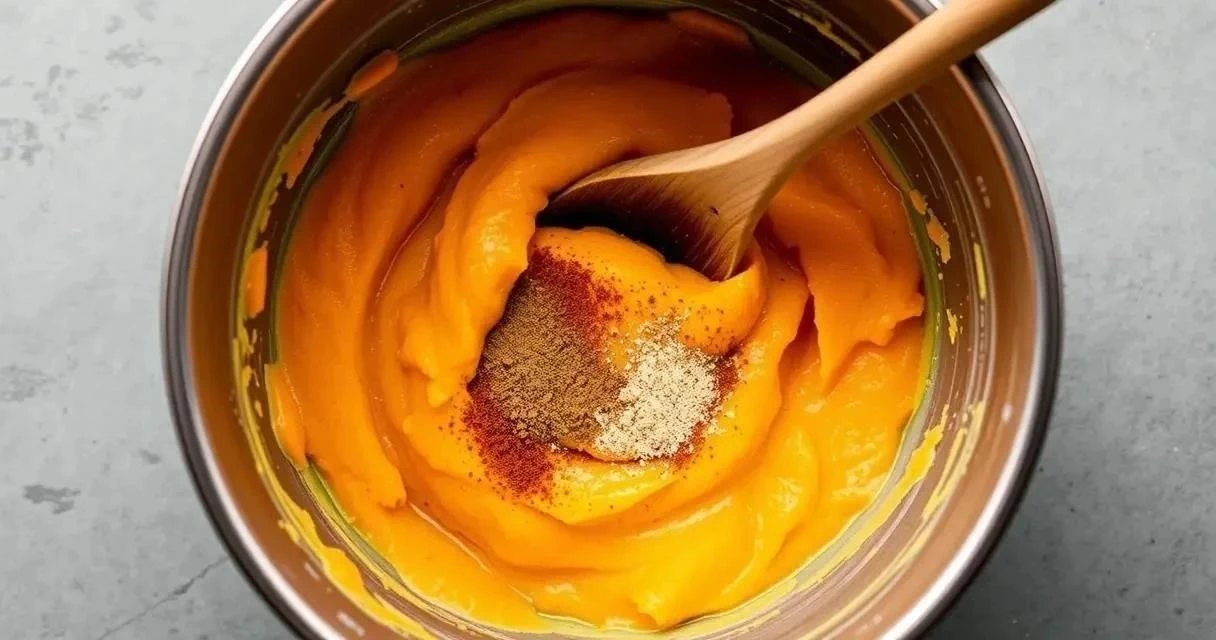 - В миске смешайте тыквенное пюре, обжаренный лук с чесноком, овсяные хлопья (или манку), яйцо, тертый сыр (если используете), мускатный орех, соль и перец. Хорошо перемешайте.