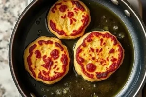 - Разогреваем растительное масло на сковороде, обжариваем по 3-5 минут с двух сторон до образования золотистой корочки при 150-160 °С. Чтобы получить пышные котлетки, возможно доведение до готовности в духовке при 250-280 °С в течение 5-7 минут.