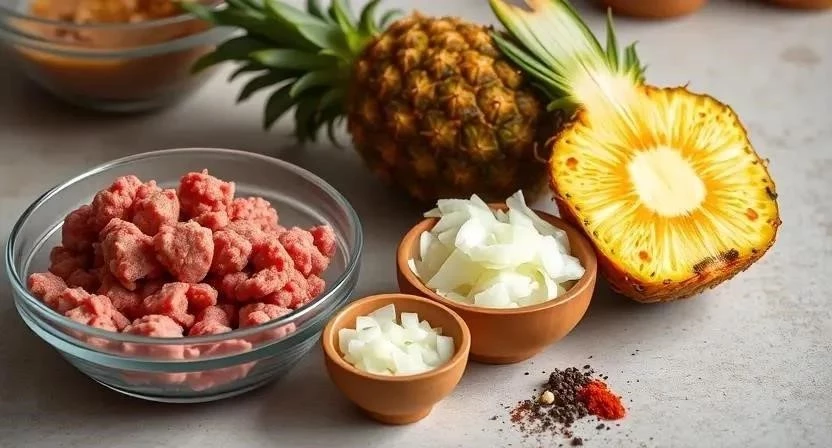 - Для более насыщенного вкуса можно замариновать ананасы в соевом соусе и имбире перед добавлением в фарш.