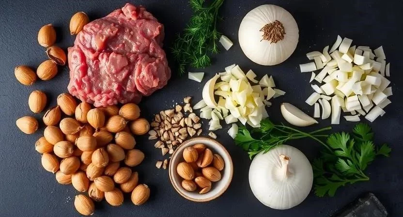 Для приготовления этих восхитительных котлет нам понадобятся качественные ингредиенты. Я всегда стараюсь выбирать свежий фарш и ароматный фундук. Если у вас нет фундука, его можно заменить грецкими орехами, но вкус будет немного другим. Вот что нам потребуется: