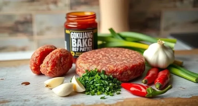 Для приготовления этих восхитительных котлет нам понадобятся следующие ингредиенты. Я всегда стараюсь выбирать свежее мясо и качественный гочудян, это очень влияет на вкус. Кстати, если вы не любите слишком острое, можно взять гочудян с меньшей степенью остроты или добавить немного сахара, чтобы сбалансировать вкус.