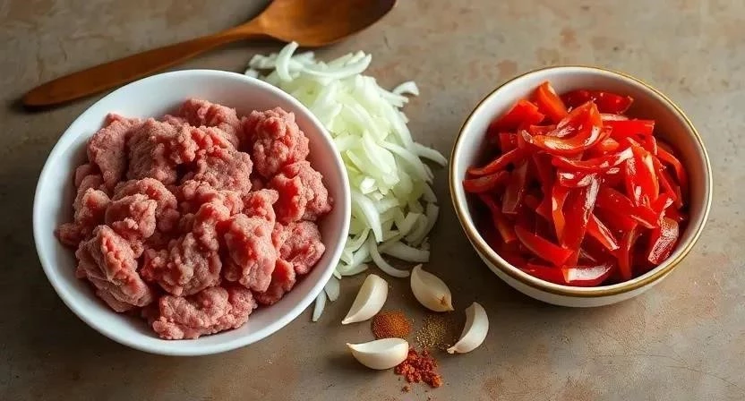 - Подготовьте фарш. Если он слишком сухой, добавьте немного воды или молока.