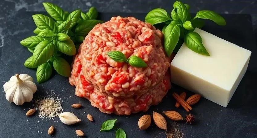 - В большой миске смешайте фарш, яйцо, измельченный чеснок, панировочные сухари, орегано, базилик, соль и перец. Тщательно перемешайте до однородной массы.