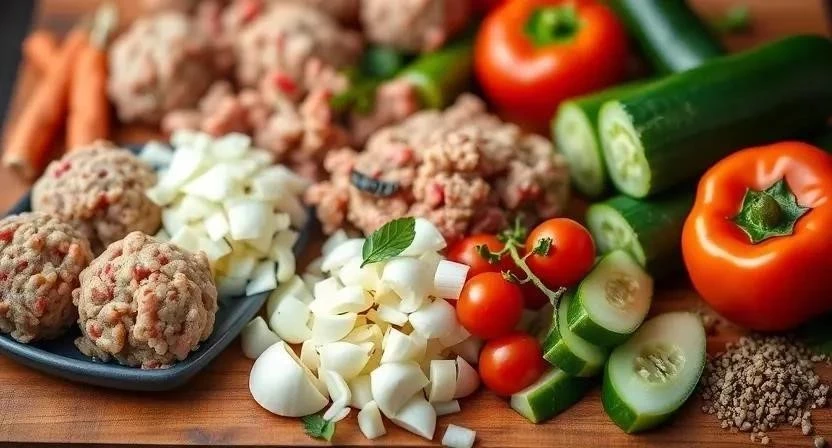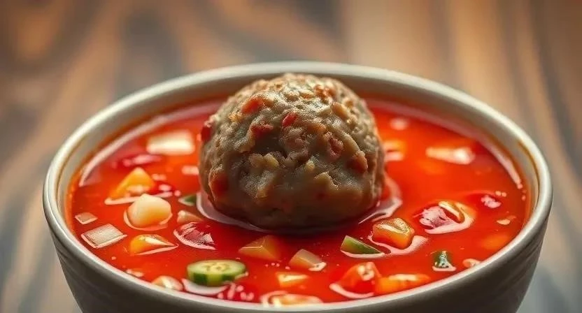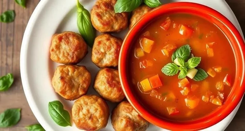 - Диетический вариант: Используйте фарш из куриной грудки или индейки. Замените оливковое масло в гаспачо на йогурт.