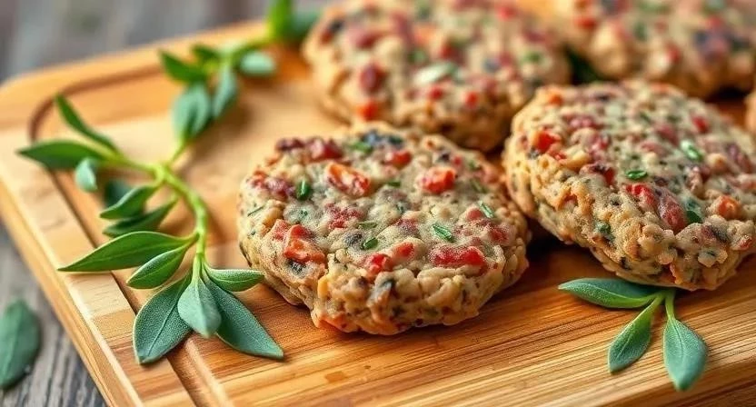 - Вегетарианские котлеты с шалфеем: Используйте нутовую муку или смесь из овощей и бобовых.