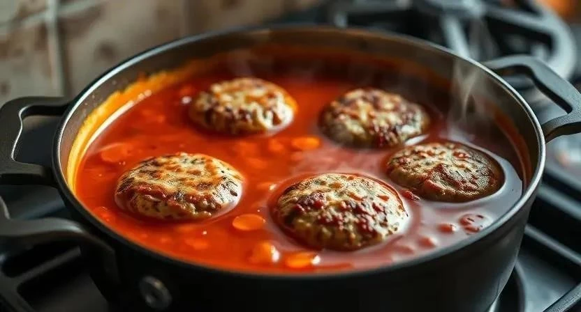 - Тушите в томатном соусе: добавьте томатную пасту, немного воды и тушите котлеты на медленном огне под крышкой 20-30 минут.