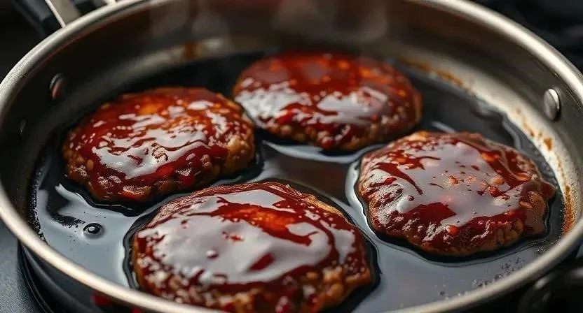 - Залейте котлеты соусом: залейте обжаренные котлеты соусом терияки и тушите на медленном огне около 10-15 минут, периодически переворачивая, чтобы котлеты равномерно покрылись глазурью.
