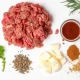 - Все компоненты соединить, добавить яйцо, всыпать столовую ложку кукурузной муки и тщательно размешать. После этого фарш присолить, заправить специями и старательно вымешать ещё раз.
