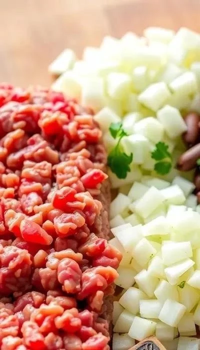 Шаг 2: Смешивание фарша. В большой миске соедините говяжий фарш, фасоль (предварительно отжатую, если используете консервированную), мелко нарезанный лук и пропущенный через пресс чеснок. Добавьте яйцо, соль, перец и специи. Тщательно перемешайте все ингредиенты до однородной массы.