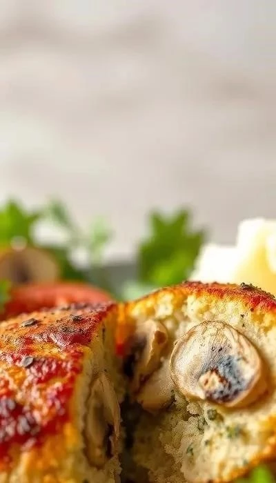 Ингредиенты: 500 г куриного фарша, 200 г шампиньонов, 1 луковица, 100 г твердого сыра (например, чеддер или пармезан), 1 яйцо, 2 ст.л. сметаны, соль, перец – по вкусу, растительное масло для смазывания противня. Время приготовления: около 40 минут. Калорийность: примерно 250 ккал на 100 г.
