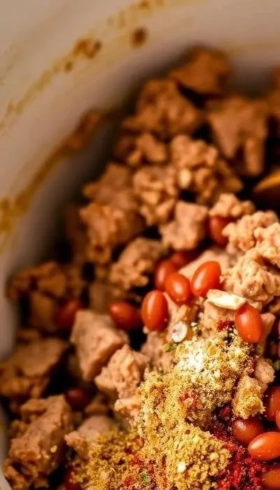Шаг 3: Смешивание ингредиентов. В большой миске соединить свиной фарш, остывшую чечевицу, обжаренные овощи, яйцо, панировочные сухари, соль и перец. Тщательно перемешать все ингредиенты до однородной массы. Фарш должен быть хорошо вымешан, чтобы котлеты не разваливались.