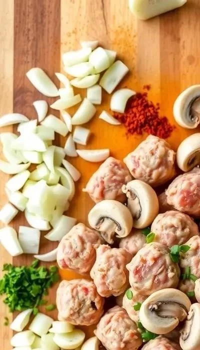 Свиной фарш – 500 г: Выбирайте фарш с умеренным содержанием жира, чтобы котлеты не получились сухими. Идеально – сочетание свинины и говядины для более насыщенного вкуса. Шампиньоны – 200 г: Эти грибы придают котлетам неповторимый аромат и сочность. Твердый сыр – 150 г: Используйте сыр, который хорошо плавится, например, российский или гауду. Яйцо – 1 шт: Связывает фарш и делает котлеты более плотными. Панировочные сухари – 2 ст. ложки: Впитывают лишнюю влагу и помогают сформировать котлеты.