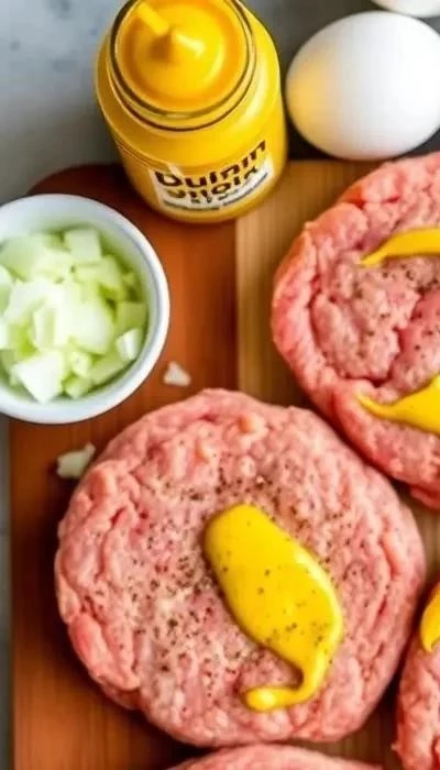 В глубокой миске соедините фарш, лук, яйцо, горчицу, панировочные сухари, молоко или сливки, соль и перец. Тщательно перемешайте все ингредиенты до однородной массы. Важно не переусердствовать с перемешиванием, чтобы котлеты не получились слишком плотными. Добавьте специи по вкусу. Помните, что горчица играет ключевую роль в этом рецепте, поэтому не жалейте ее!