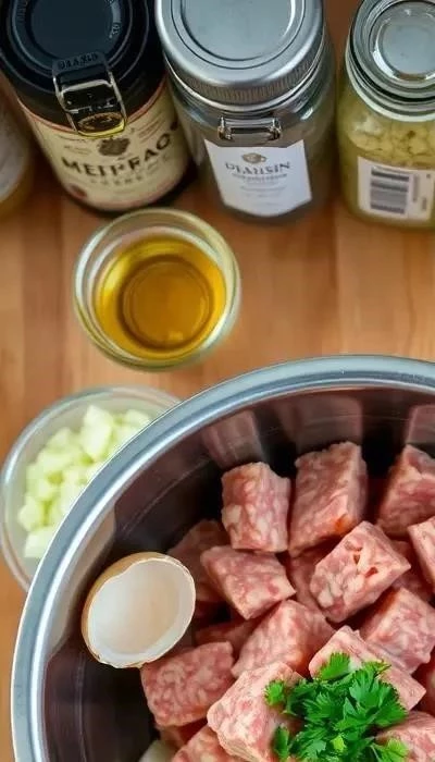Подготовка: Удалите лишние жилы и пленки. Фарш должен быть свежим и иметь приятный розовый цвет. Перед использованием дайте фаршу немного «отдохнуть» в холодильнике – это улучшит его текстуру и позволит ему лучше впитать ароматы специй и шампанского.