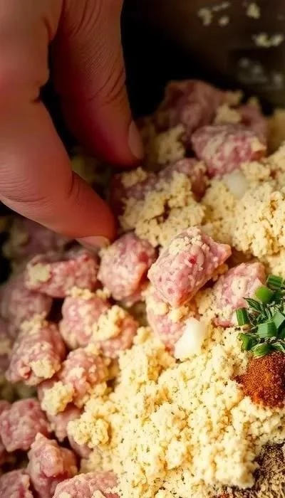 Ароматные специи: Приправьте фарш тимьяном, солью и перцем по вкусу. Тщательно вымесите фарш руками до однородной консистенции – это важно для сочности!