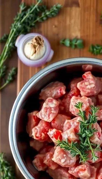 Пропорции: На 500 грамм фарша достаточно 1-2 чайных ложек сушеного тимьяна или 1-2 столовых ложек свежего, мелко нарезанного. Не переборщите, чтобы тимьян не перебил вкус свинины.